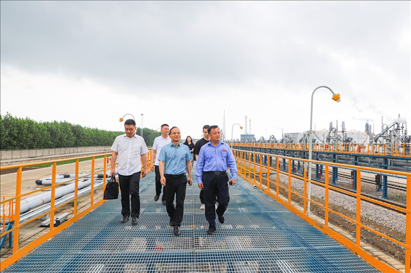 王副总陪同刘处长一行进入厂区,实地考察了聚丙烯、气分、重整等生产装置,参观了新售油平台、铁路装卸站和金澳博物馆。