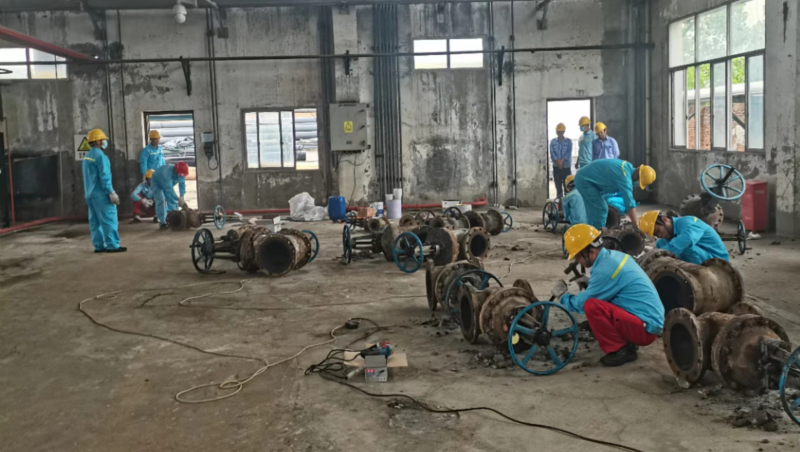 物流公司监利油库组织人员对大修替换下来的可利用阀门、管线等物资开展修旧利废工作。
