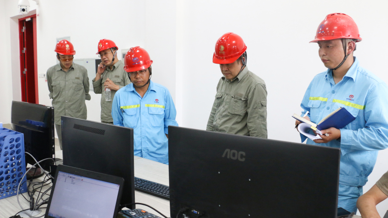 在公司副高级工程师、电能处处长王铁军的陪同下,各供电公司及相关单位负责人重点检查了110kV竹能线、变电站主要设备、电气控制室、GIS室、35kV配电室。